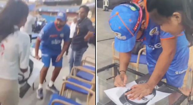 वानखेड़े में महिला एमआई फैन ने रोहित शर्मा के पैर छुए