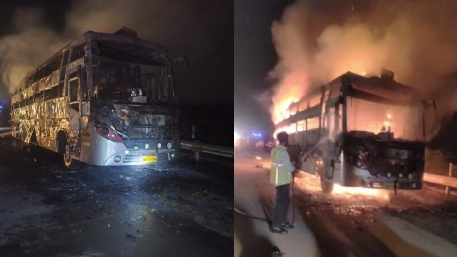 यमुना एक्सप्रेस वे पर चलती बस में लगी आग, 50 से ज्यादा यात्रियों की बच...