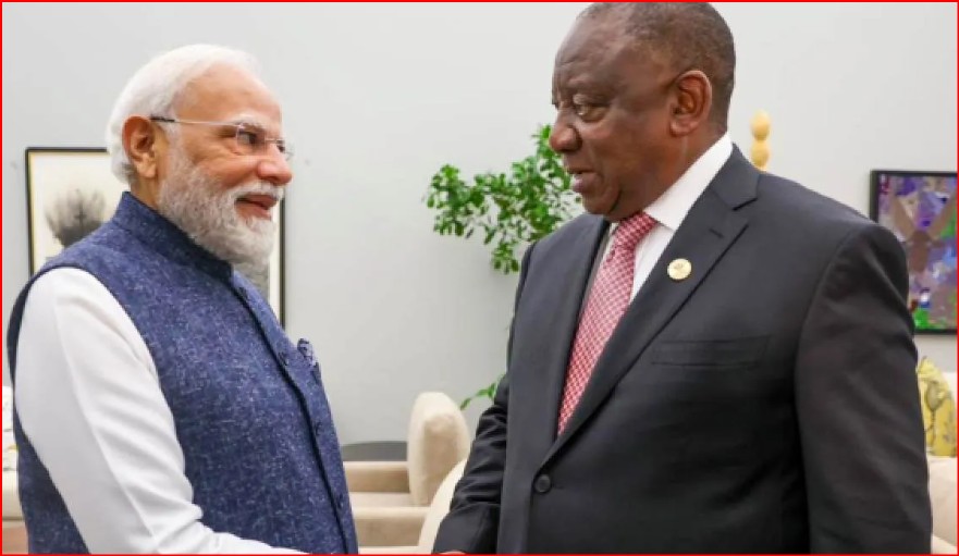 जी20 शिखर सम्मेलन में पीएम मोदी और दक्षिण अफ्रीका के राष्ट्रपति सिरिल ...