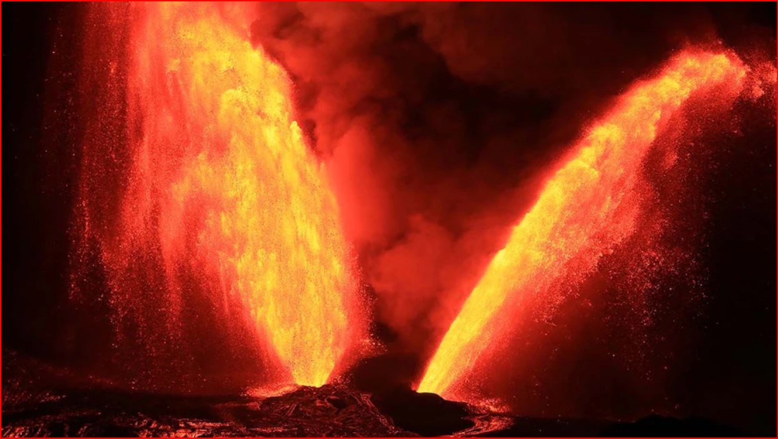 किलाउआ ज्वालामुखी फटा... शैतान की सींग की तरह निकली 1500 फीट ऊंची लावे...