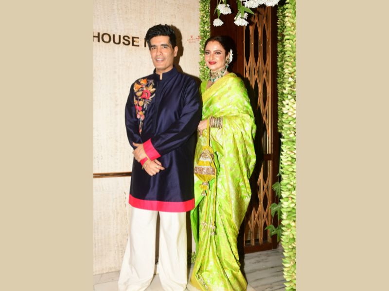 Ayushmann Khurrana, Iulia Vântur, Rekha & Kajol At Manish Malhotra's House To Seek The Blessings Of Bappa